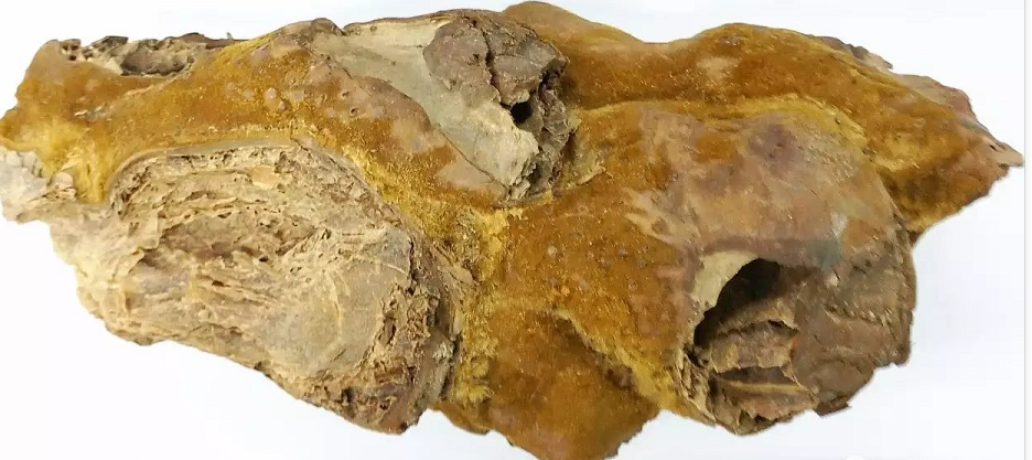 【性状】 本品呈不规则的长块状,,长10~30cm,,直径2~10cm。。表面深棕色,,残留金黄色绒毛;上面有数个红棕色的木质叶柄,,,,下面残存黑色细根。。。质坚硬,,,,不易折断。。。。无臭,,,,味淡、、、、微涩。。。生狗脊片呈不规则长条形或圆形,,长5~20cm,,直径2~10cm,,,,厚1.5~5mm;切面浅棕色,,较平滑,,近边缘1~4mm处有1条棕黄色隆起的木质部环纹或条纹,,,,边缘不整齐,,偶有金黄色绒毛残留;质脆,,,易折断,,有粉性。。熟狗脊片呈黑棕色,,质坚硬。。。
