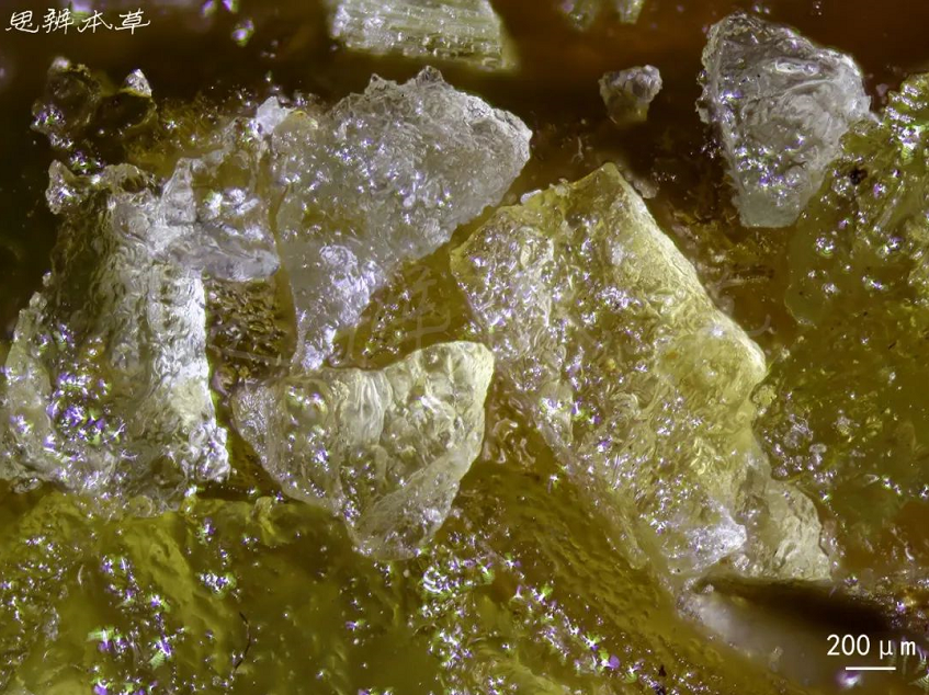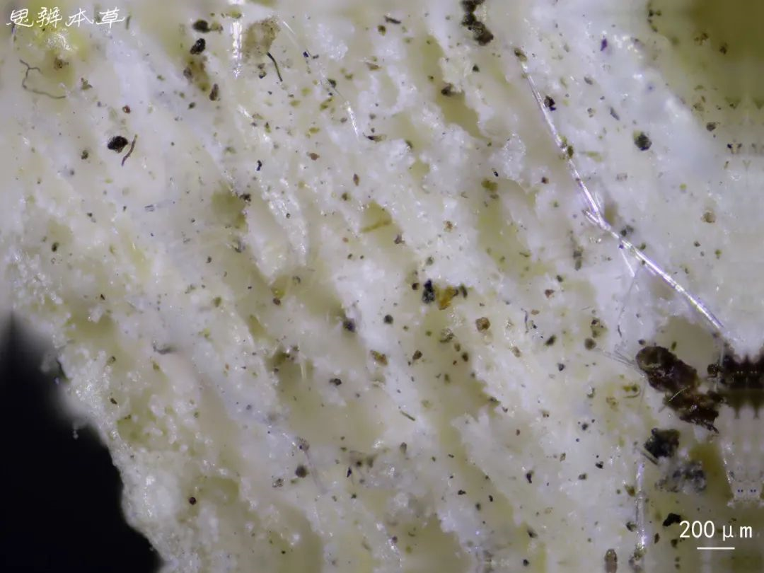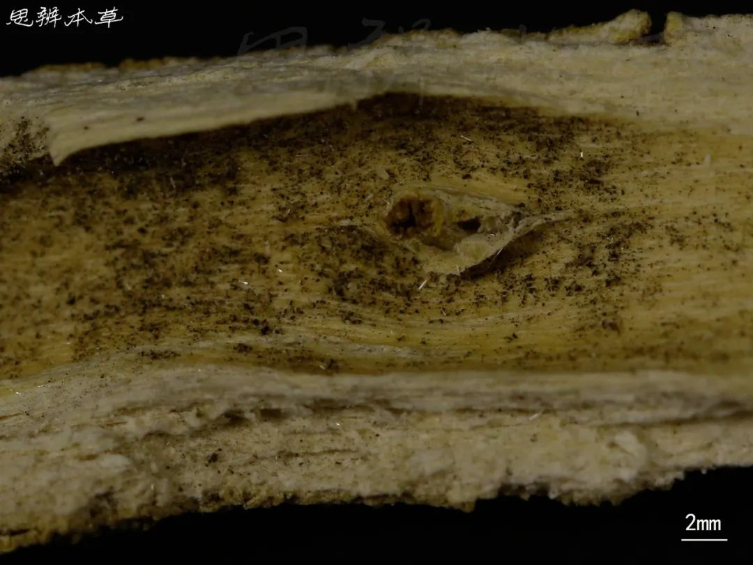 徐长卿折断面显微下可见“小亮星”,,为丹皮酚析出形成的结晶。。。